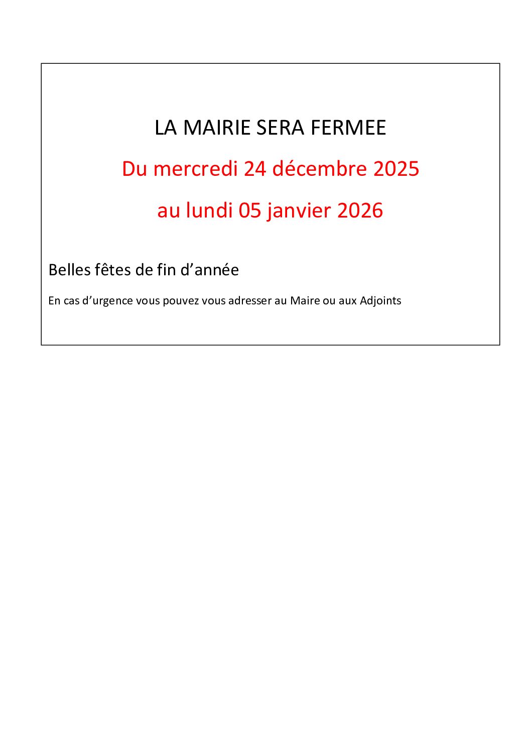 FERMETURE DE LA MAIRIE POUR LES FETES DE FIN D’ANNEE