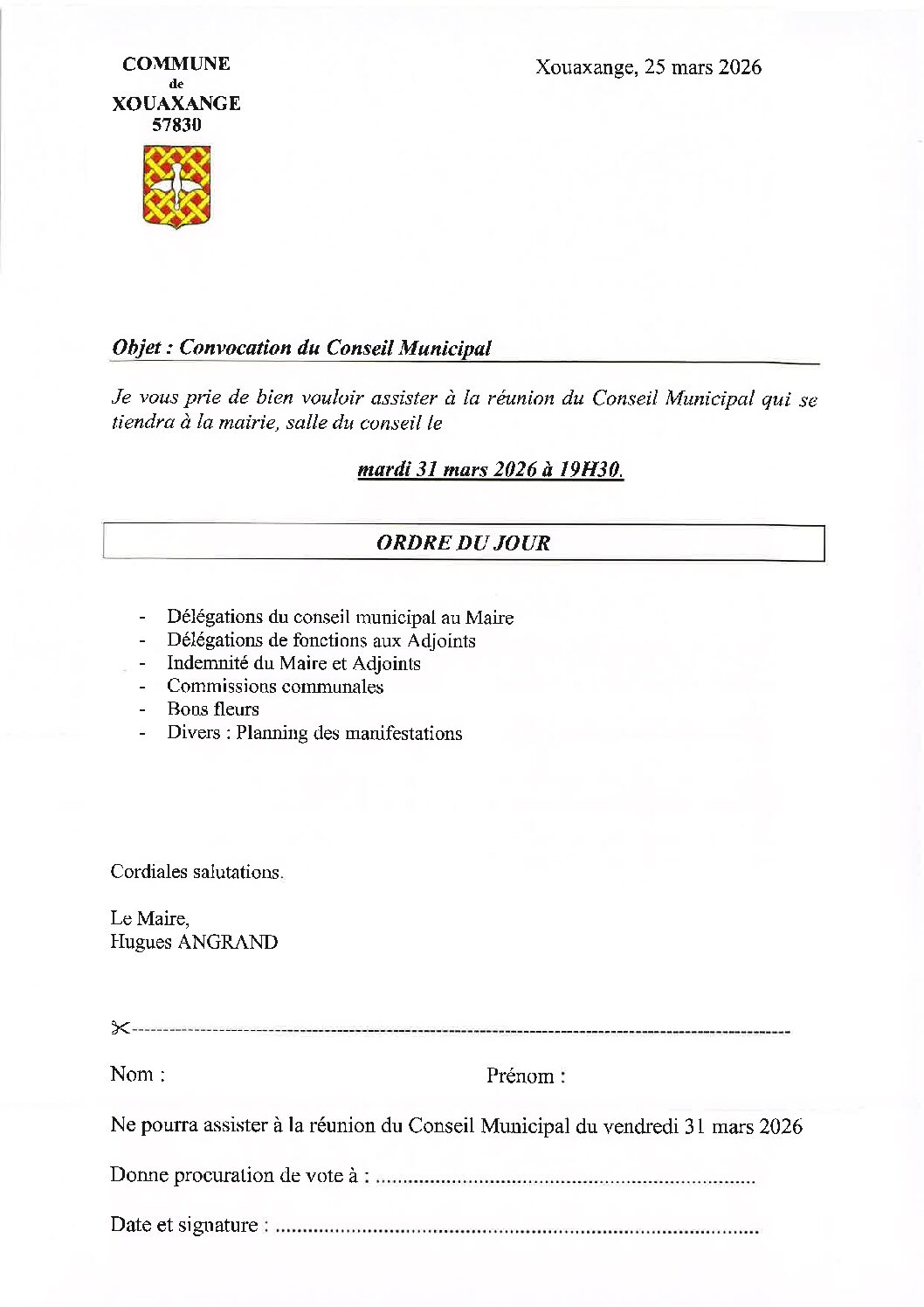 REUNION DU CONSEIL MUNICIPAL 31 MARS 2026