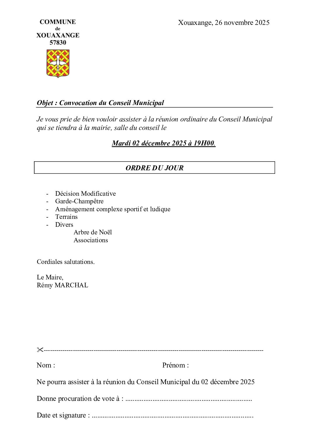 REUNION DU CONSEIL MUNICIPAL
