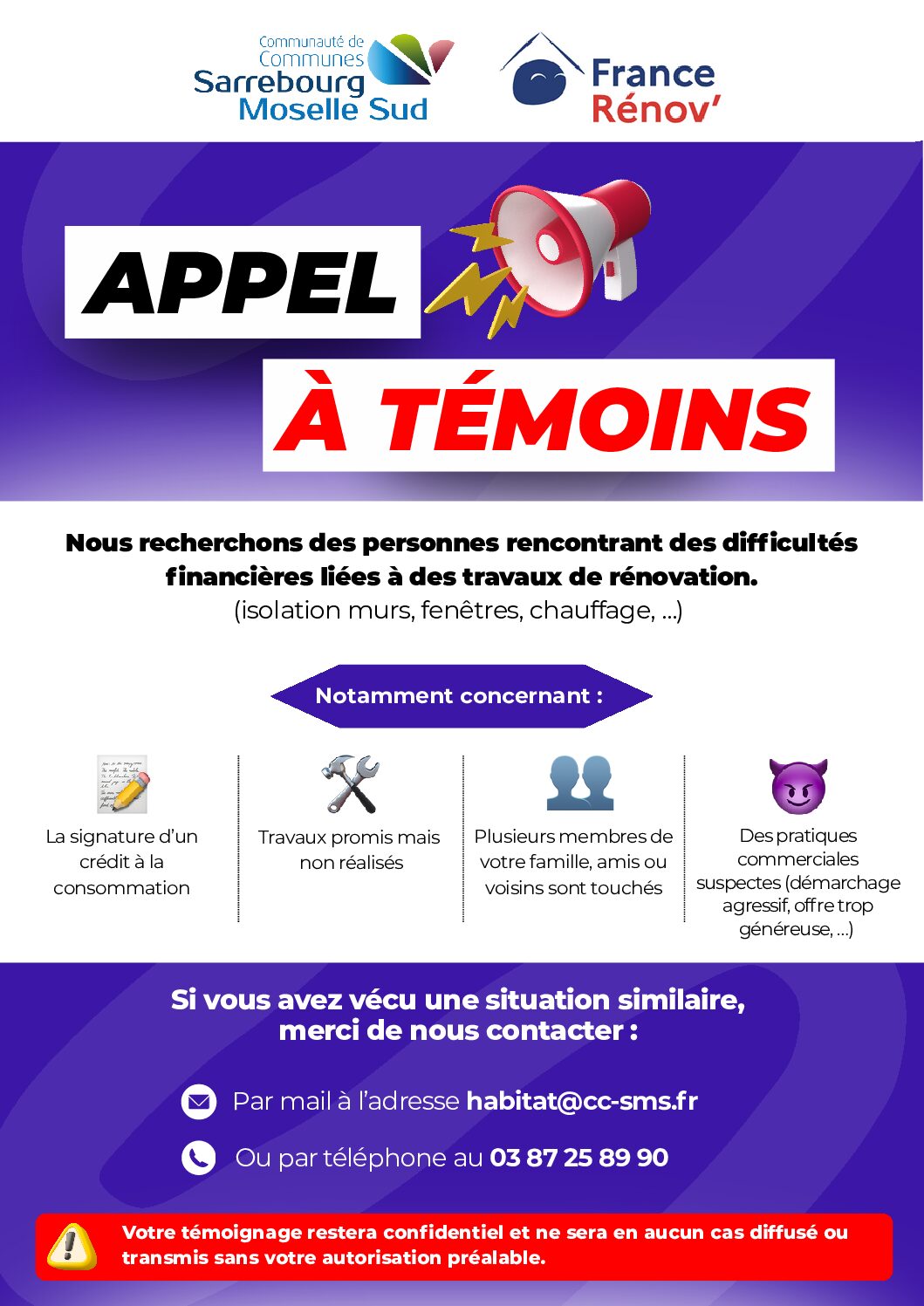 FRAUDE TRAVAUX ENERGETIQUE – APPEL A TEMOINS