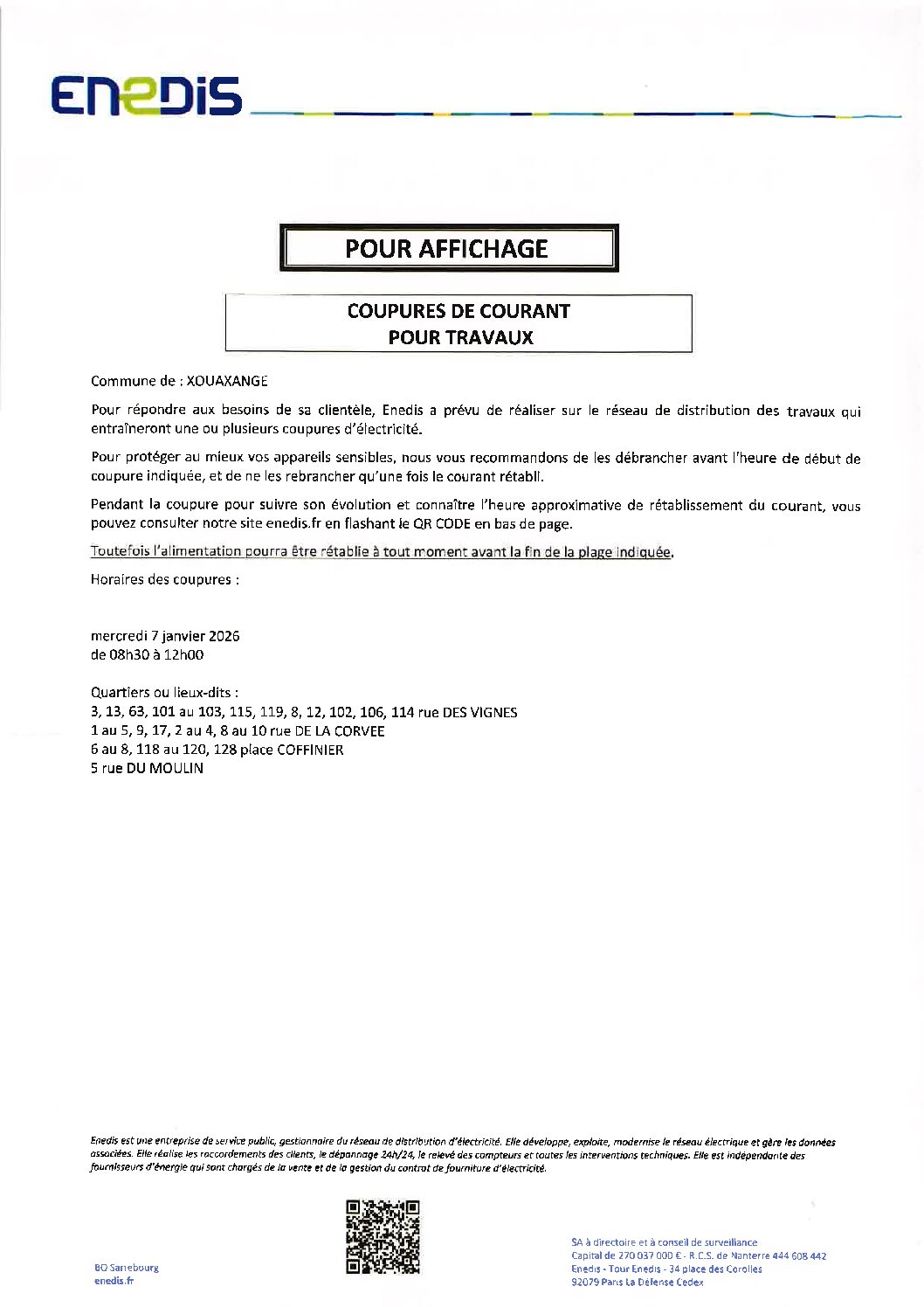 COUPURE COURANT – TRAVAUX 2026